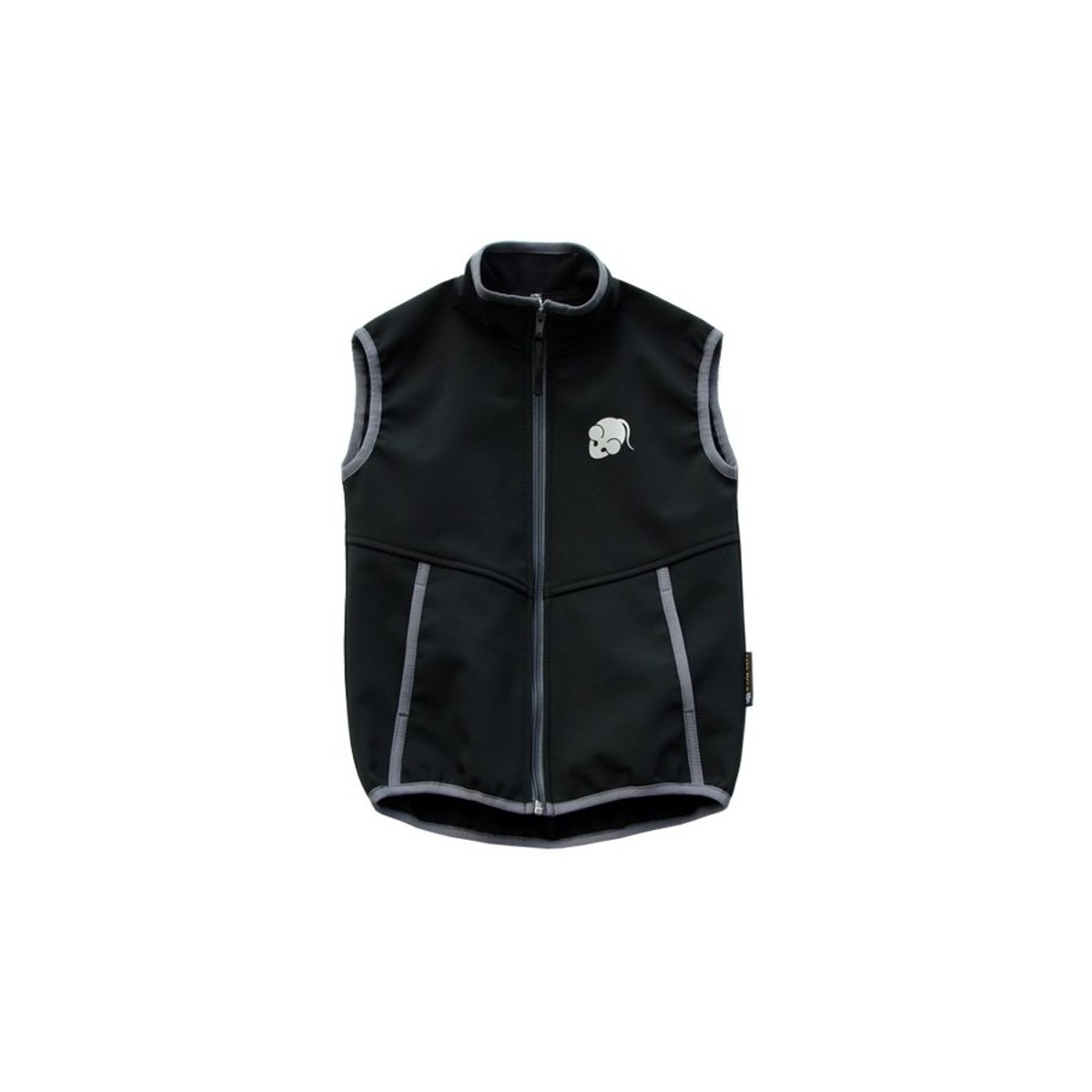 U černé vesty šedý zip, i lemování.